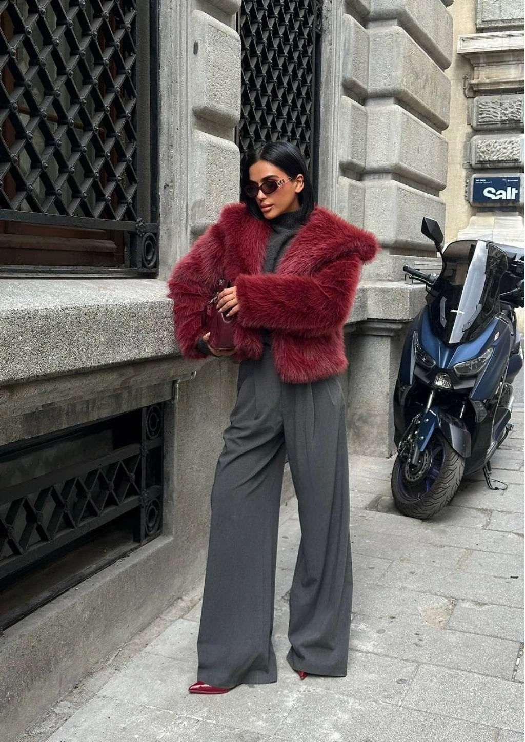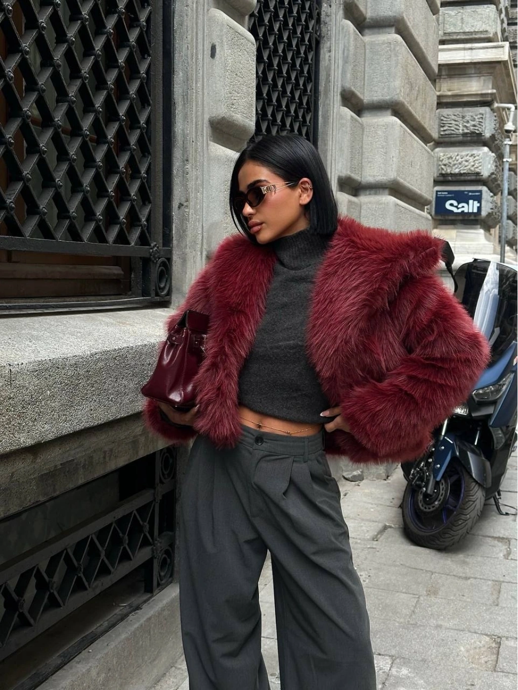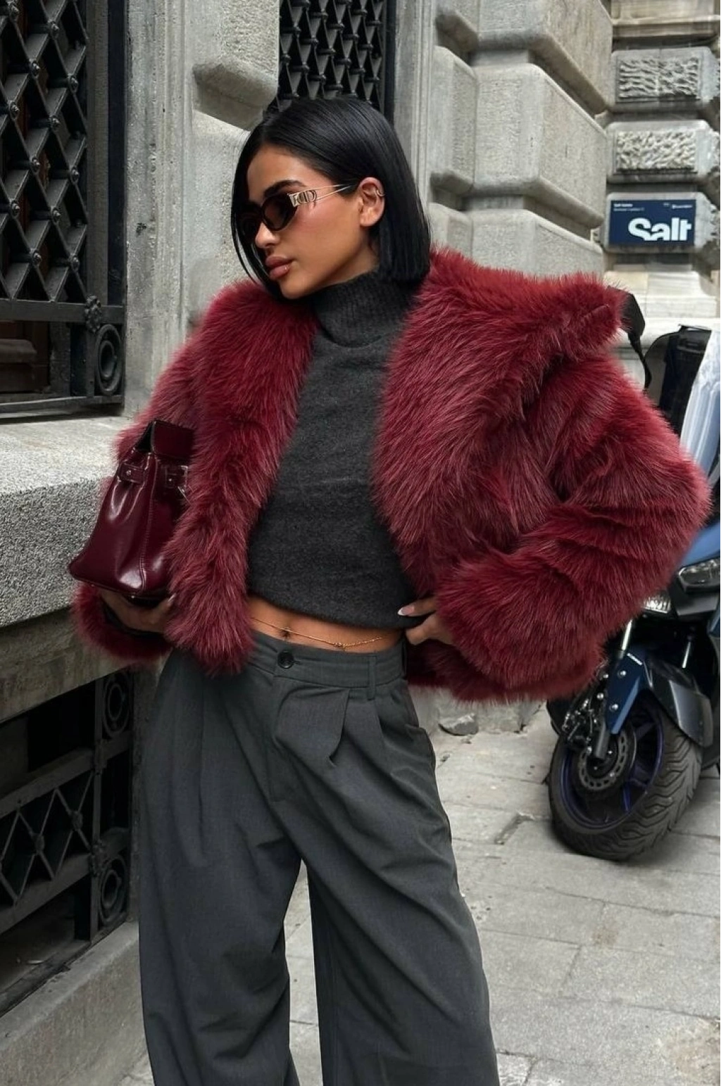 Else Acı Kahve Dokulu Süet Içi Peluşlu Oversize Zr Model Mont
