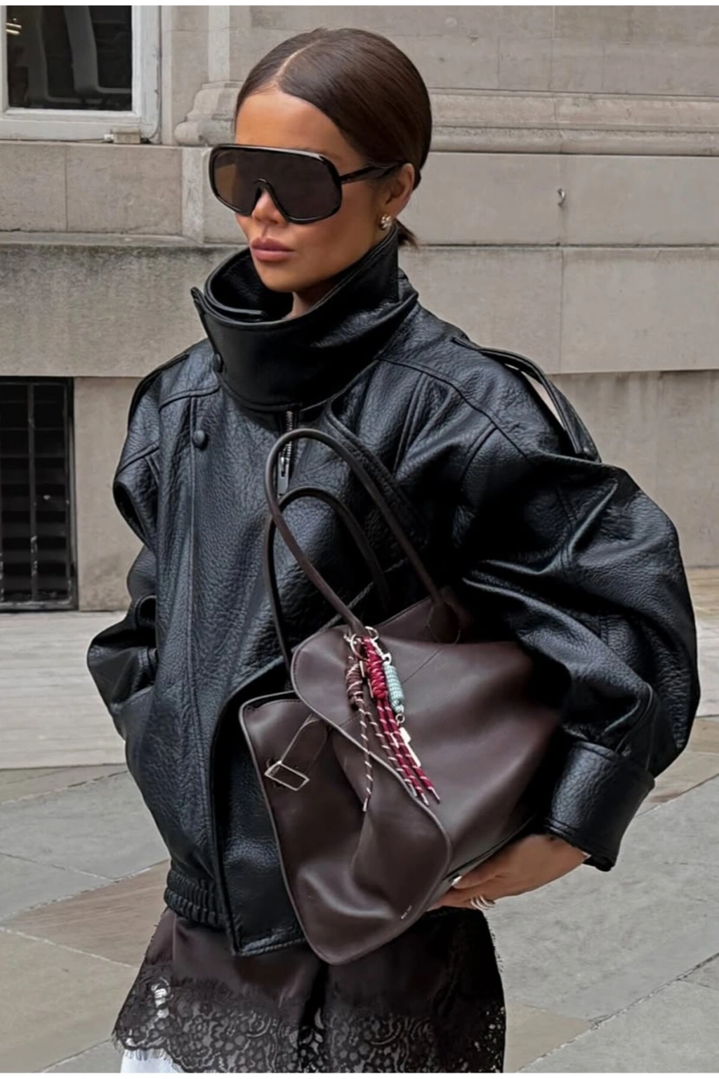 Yeni Sezon Suni Oversize Bomber Deri Ceket