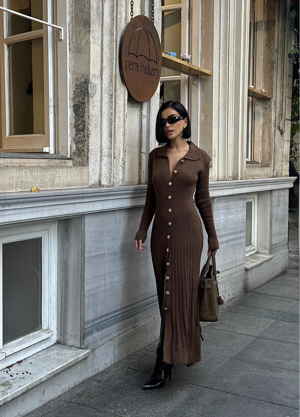 Kadın Viral Yeni Sezon Düğme Detaylı Elbise