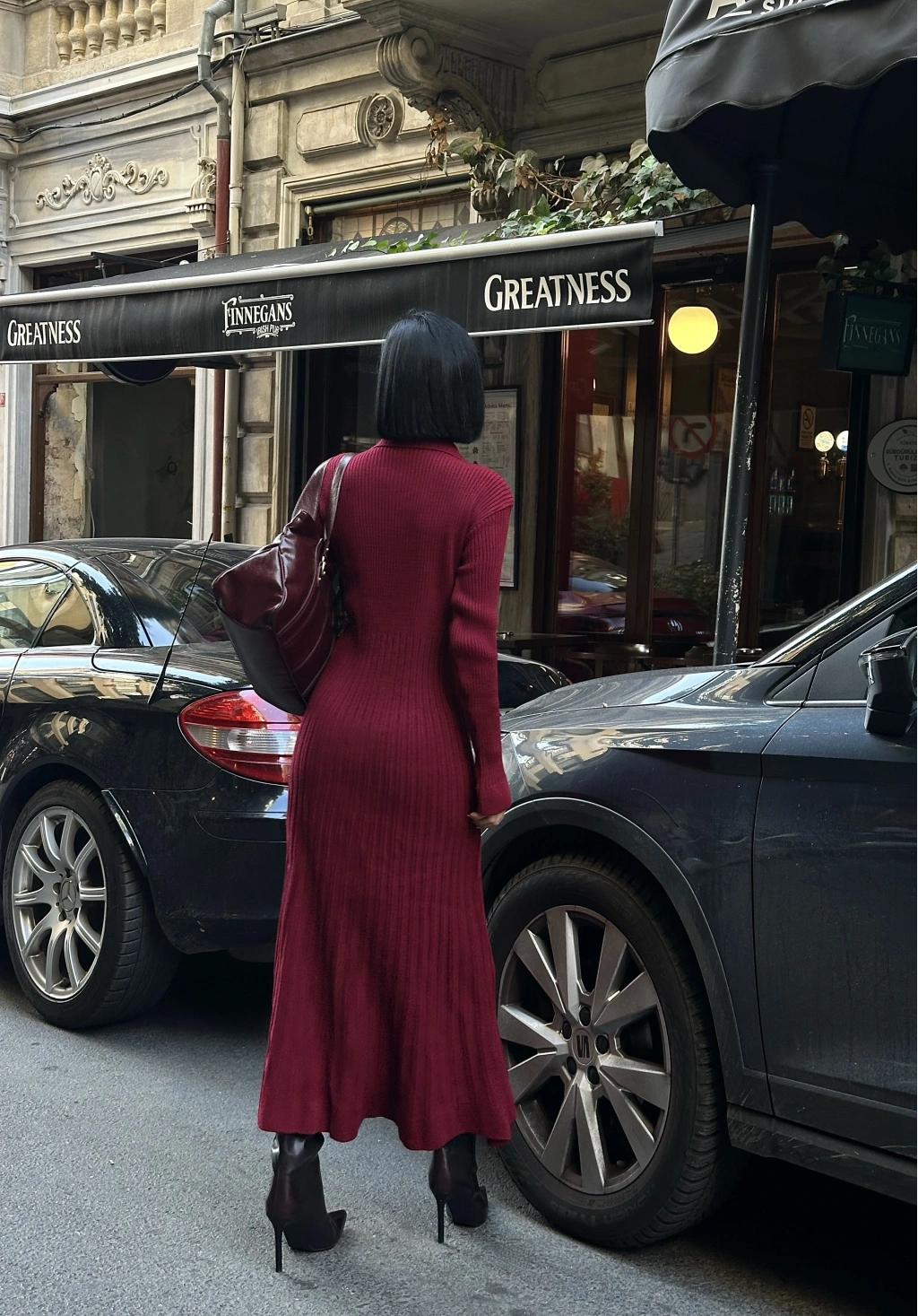 Kadın Gül Kurusu Sırt Bağlamalı Kare Yaka Elbise