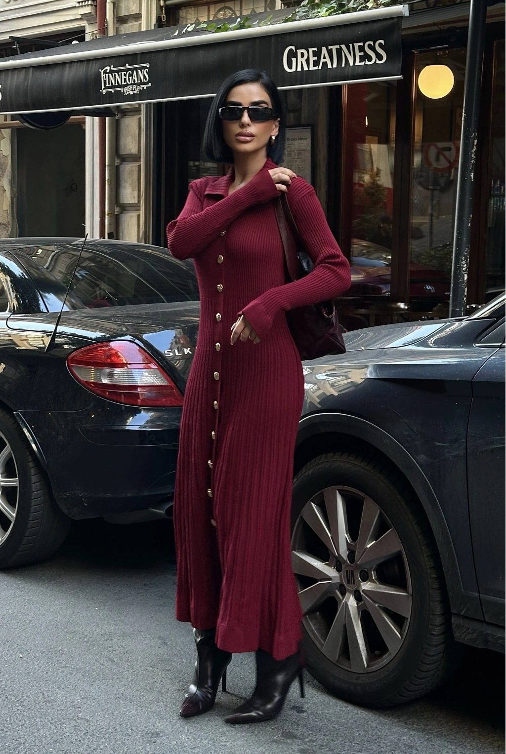 Kadın Viral Yeni Sezon Düğme Detaylı Elbise