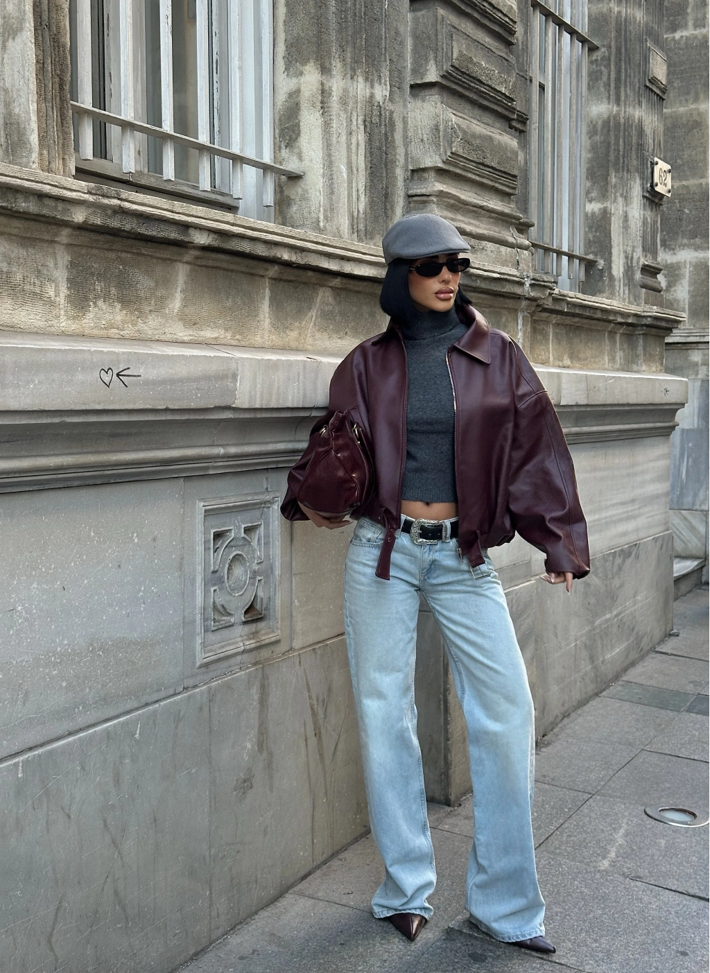 Yeni Sezon Suni Oversize Bomber Deri Ceket