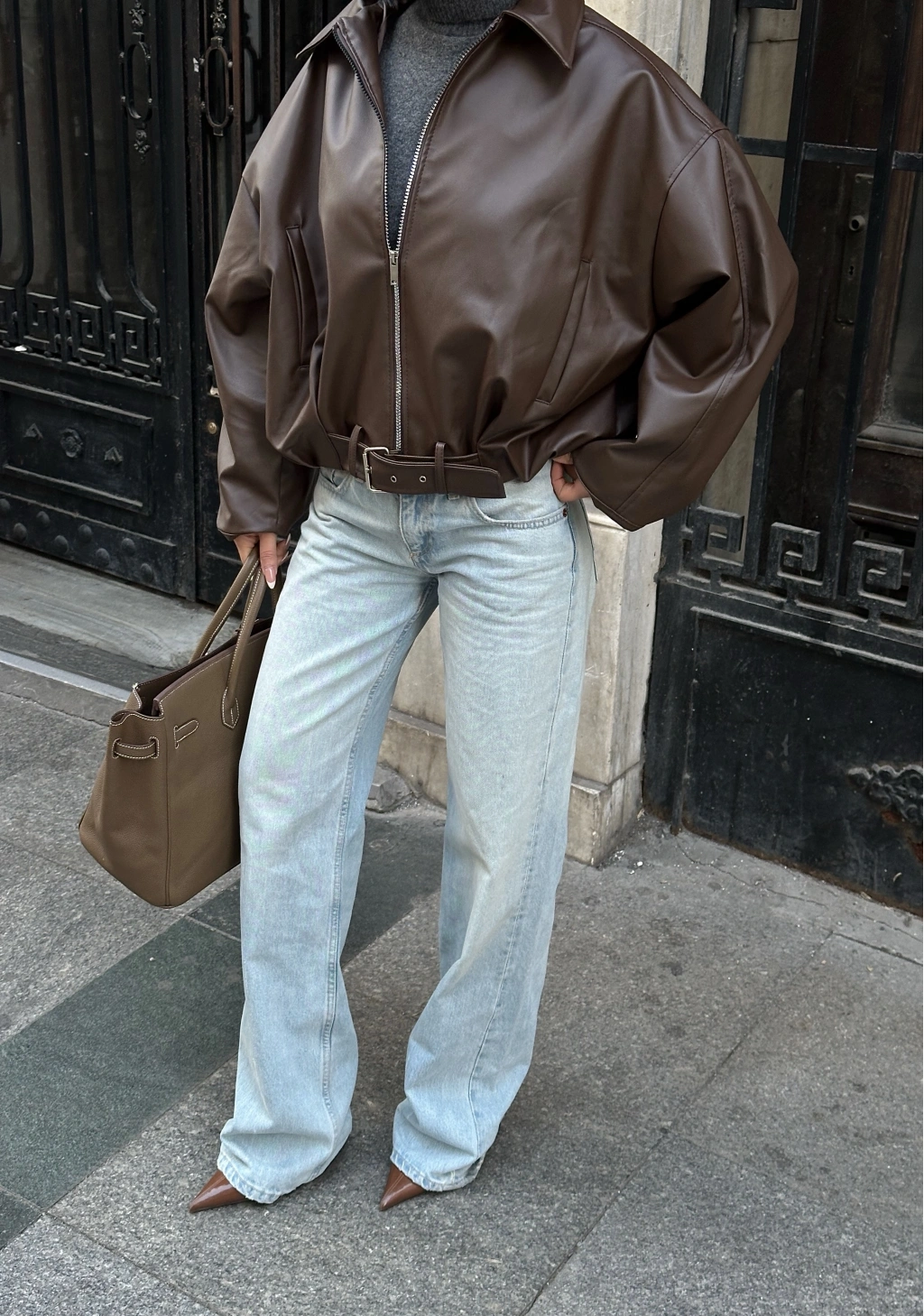 Yeni Sezon Suni Oversize Bomber Deri Ceket