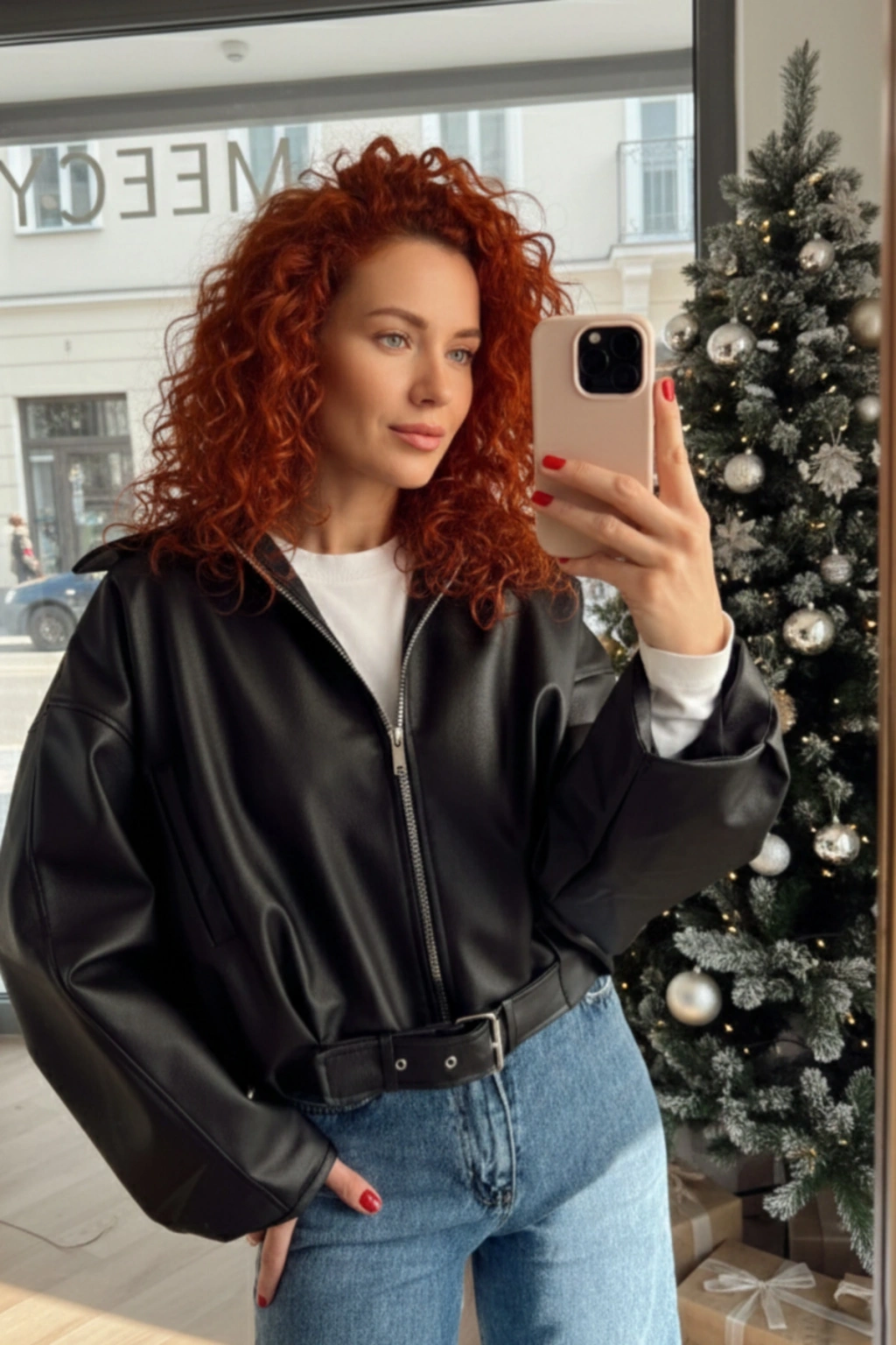 Kadın Oversize Biker Deri Ceket